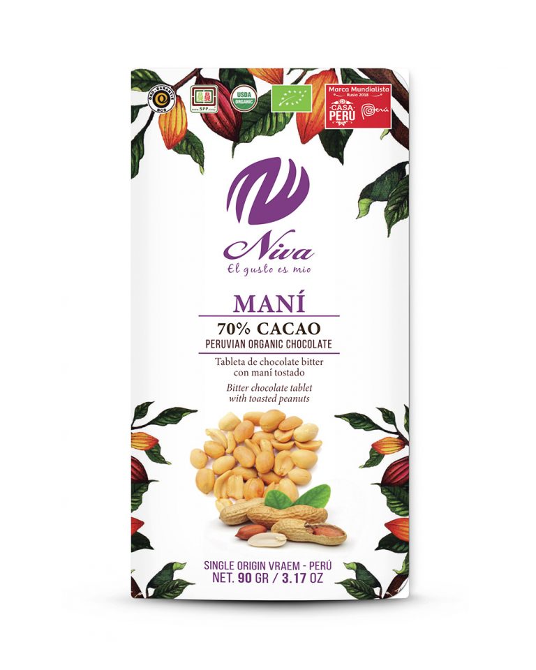 Chocolate bitter con maní de 90g - 70% cacao orgánico. cantidad